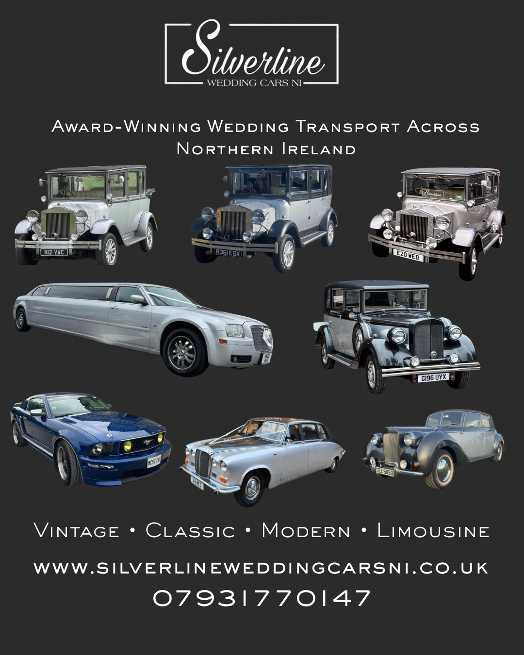 Silverline Wedding Cars NI is a premium Northern Ireland wedding transport provider, led by husband-and-wife team Kieran and Georgina. Based in Crumlin, they offer an exquisite collection of vintage, classic, and luxury chauffeur-driven vehicles, ensuring every arrival is as unforgettable as the occasion itself.
